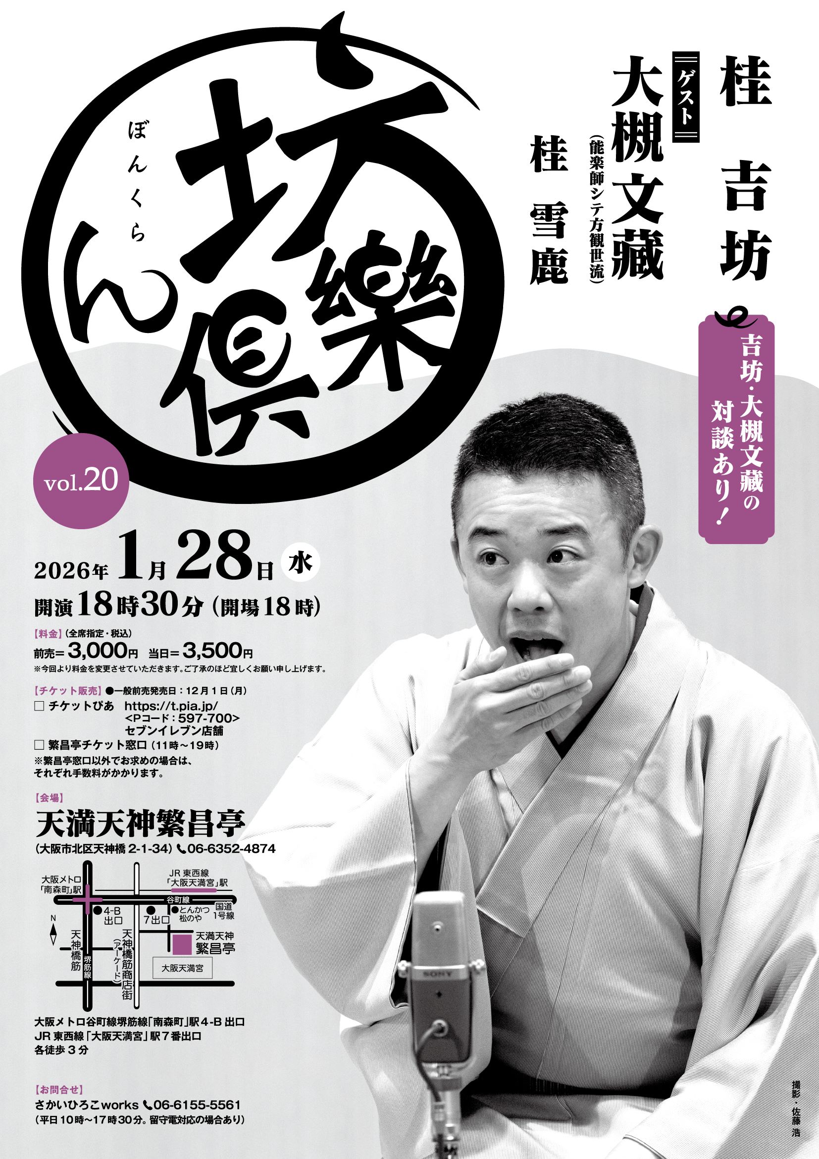 10月24日(金)の『坊ん倶樂 vol.19』公演中の繁昌亭ロビーにて先行販売を行います。